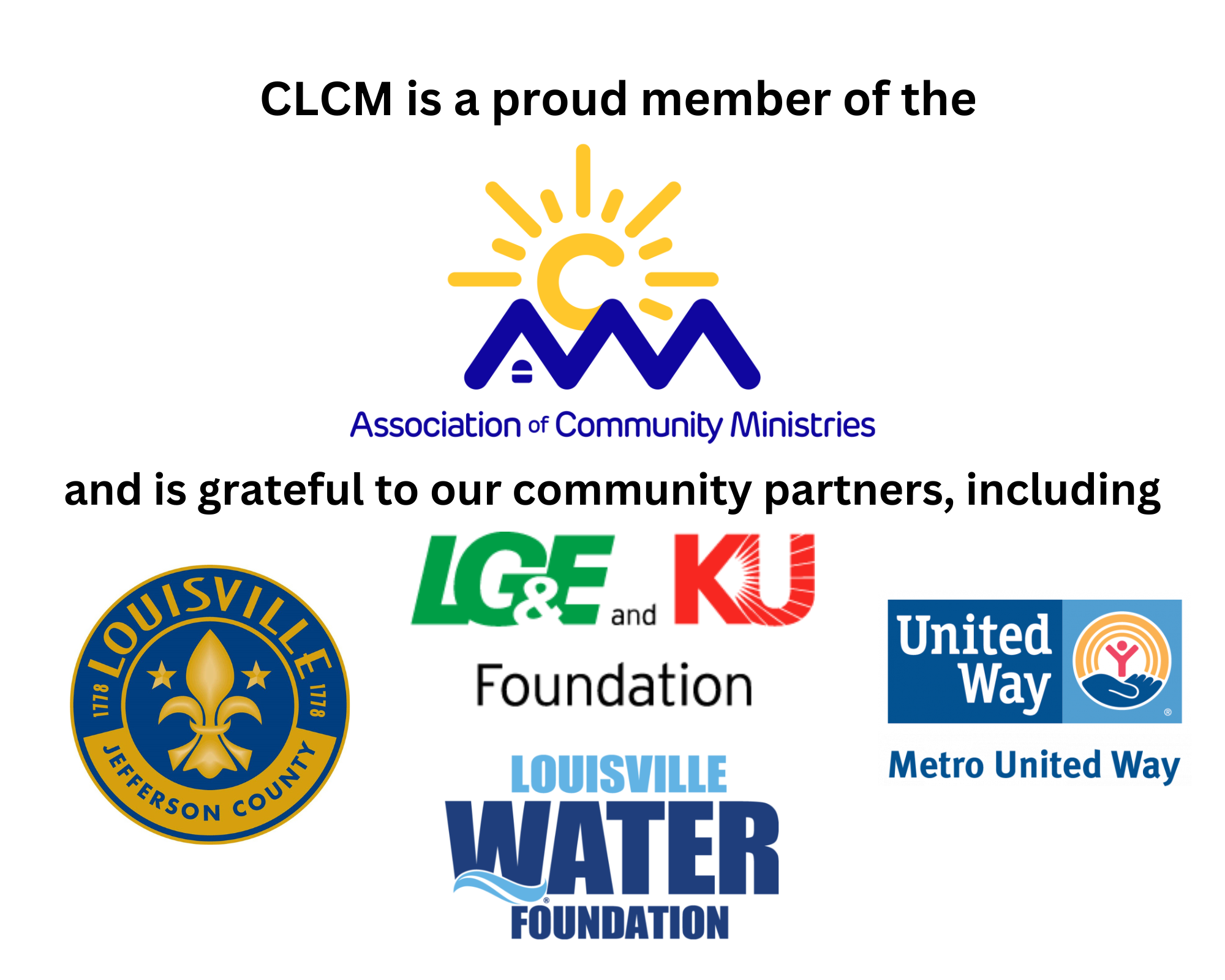 Through ACM’s partnership with LG&E and Louisville Water Company, we ensure that more than 10,000 families every year have running water, heat in the winter, and air in the summer. We partner with more than 300 churches throughout Jefferson County, and through that network, are able to help thousands more reach stability. We also work closely with Louisville Metro Government to administer local funds in our community.
